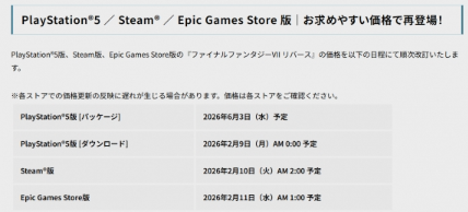 近日,Square Enix在社交媒体发文宣布,将对《最终幻想7:重生》的数字版与实体版进行全球范围内的永久性价格下调,此次调整将覆盖PS5、Steam及Epic等全平台。
